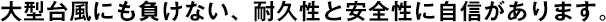 それを実証する出来事がありました。2015年8月、台風15号が九州に上陸したときのことです。最大風速70m/s、瞬間時速160kmという大型の台風だったため、多くの太陽光発電施設が架台ごと吹き飛ばされるなどの甚大な被害をもたらしました。しかし、この大型台風の中でもAISIN MATERIALの架台システムは倒れることがありませんでした。耐久性、安全性についての高品位なクオリティーの証しとなりました。